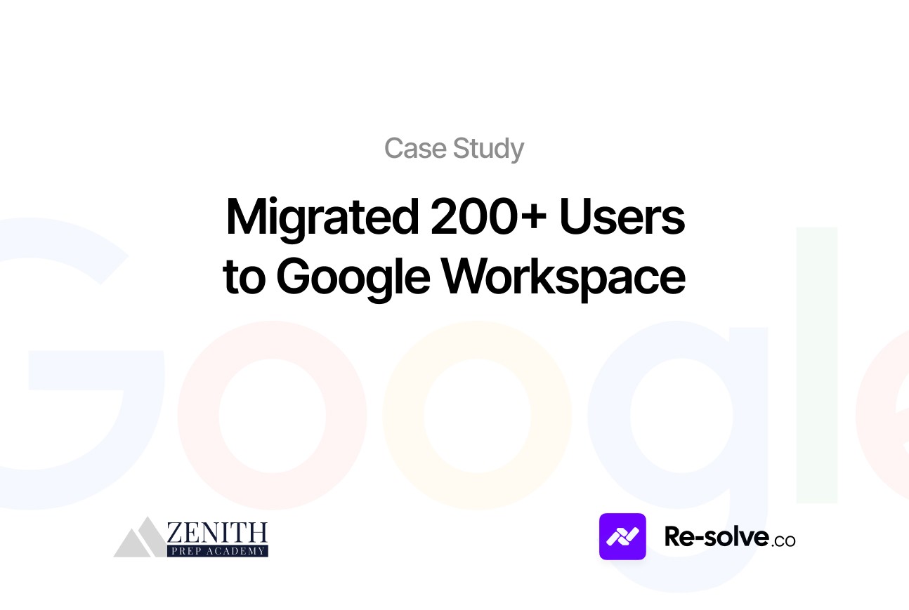 Re-solve.co recently partnered with Zenith Prep Academy to manage their complex organization-wide migration from legacy systems (Outlook) to Google Workspace. This project involved transition over 200 users, including specialized teams like Admissions and Program Directors, under tight deadlines. Our key success was seamlessly migrating complex scheduling systems and calendars, ensuring zero double-bookings and zero interruption to business operations.